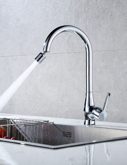4、龙头出水口采用两功能起泡器,可以翻转切换不同水花,冲洗杂质。